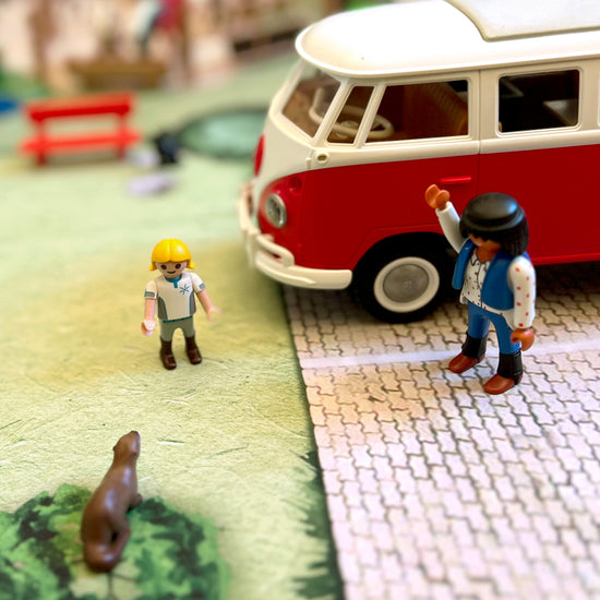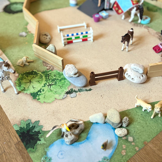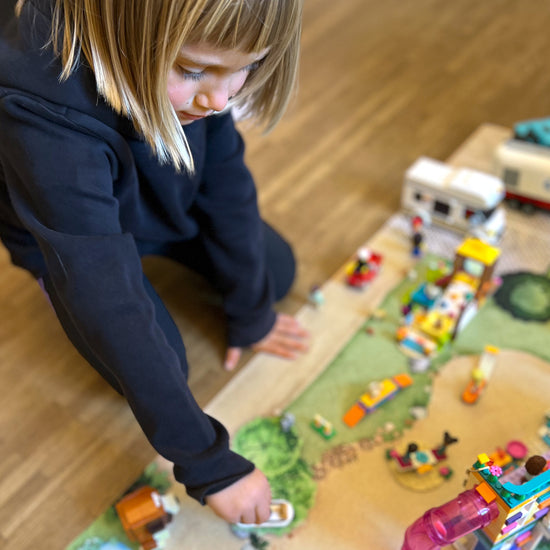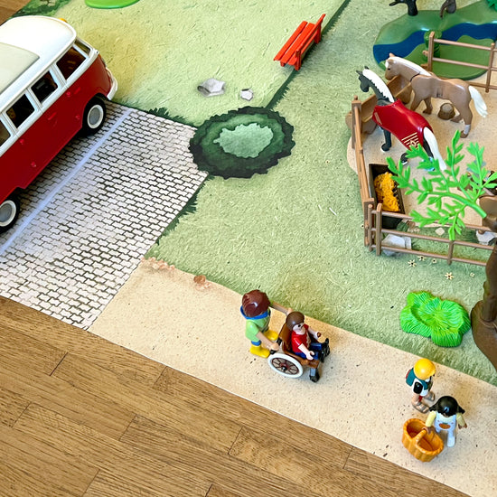 Die Spielmatte lädt Kinder dazu ein, ihre eigene kleine Welt zu erschaffen. Ideal für Playmobil, Lego und vieles mehr.